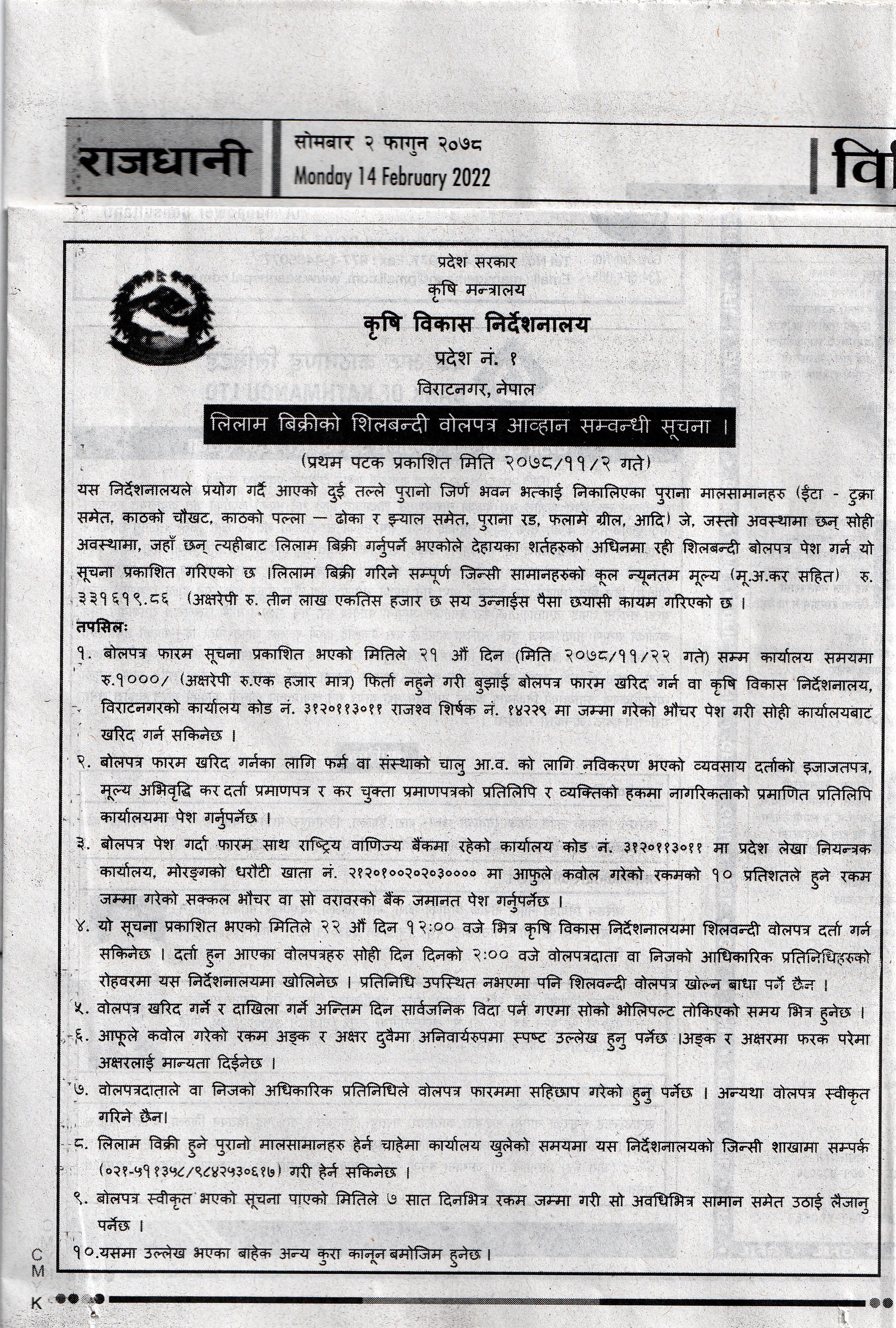 लिलाम बिक्री सम्बन्धी सूचना (०७८/११/०२)