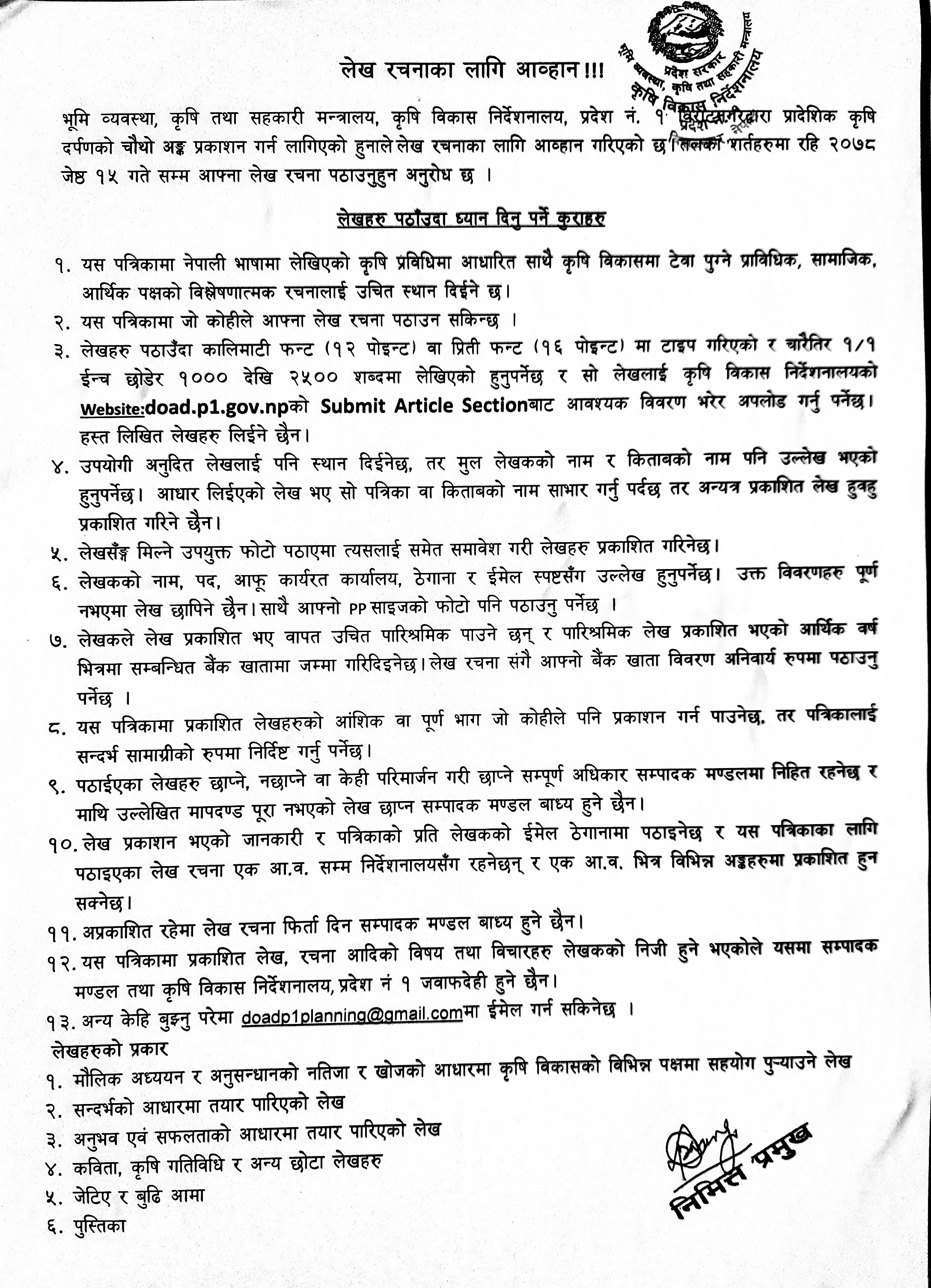 कृषि डायरी, 2078 छपाइ सम्बन्धी शिलबन्दी दरभाउपत्र आव्हान