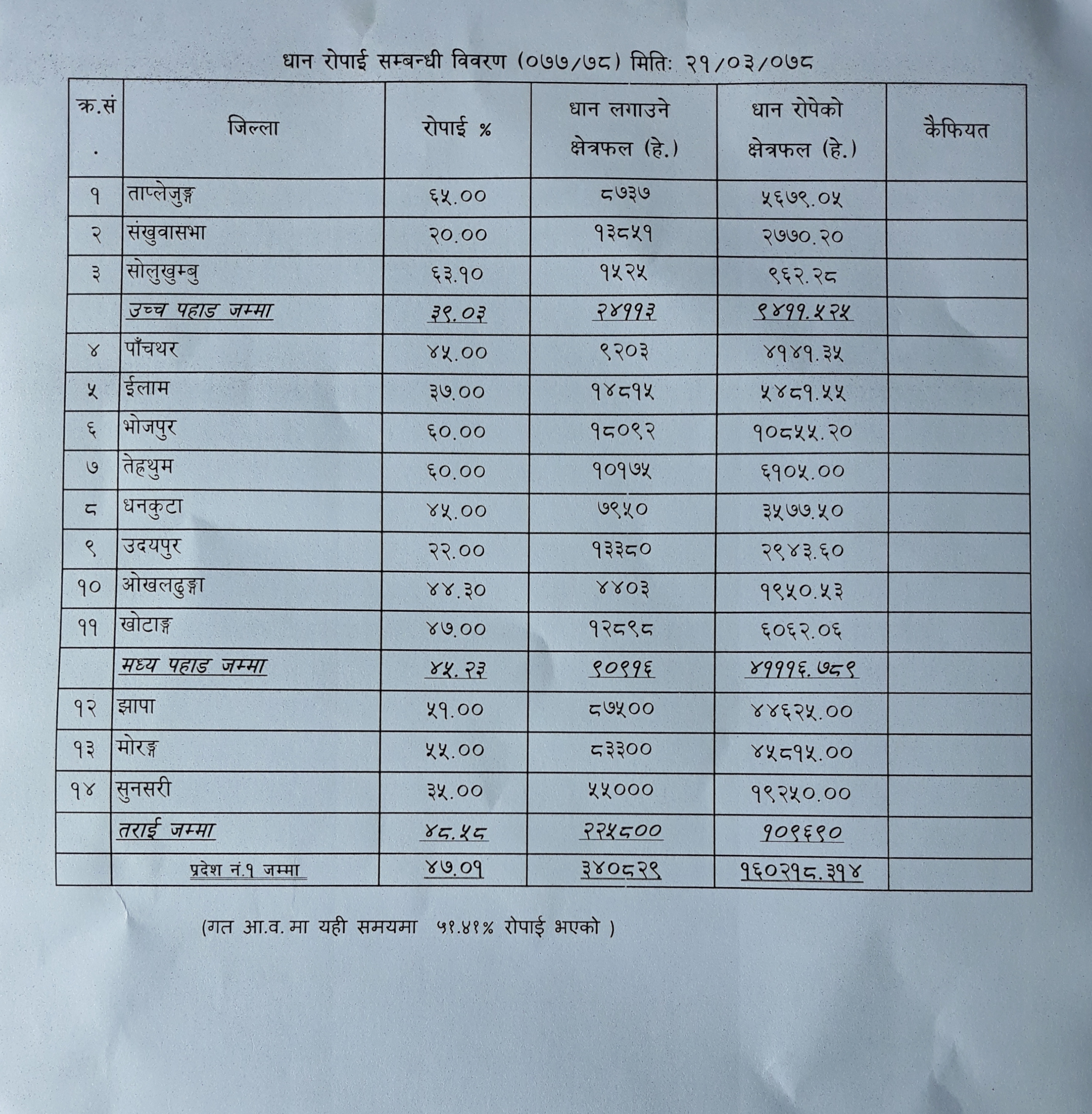 धान रोपाई सम्बन्धी विवरण (2078/3/२१)
