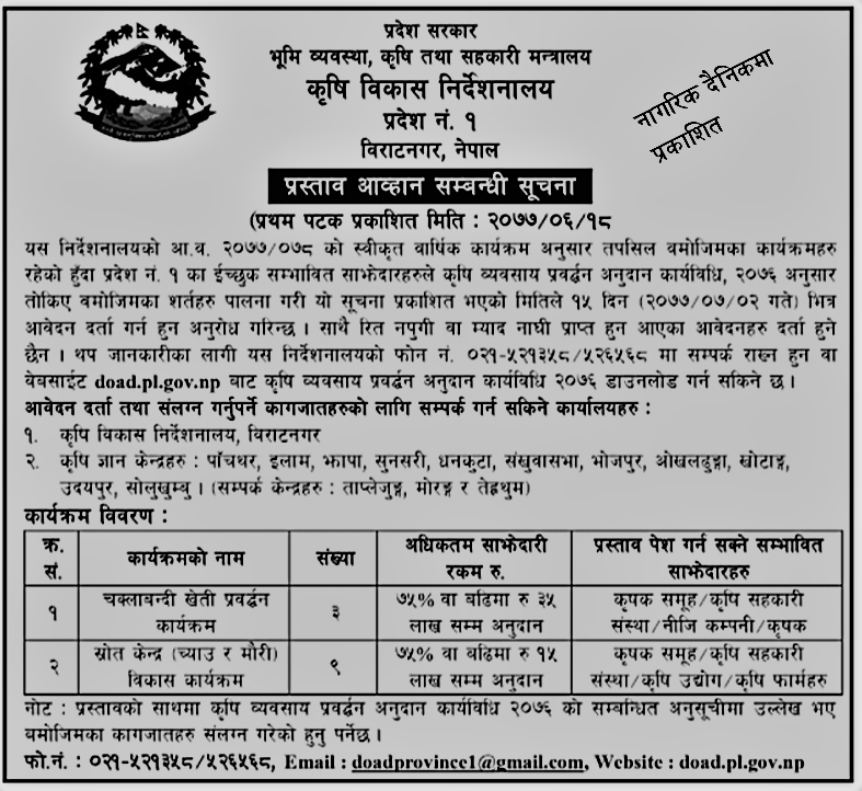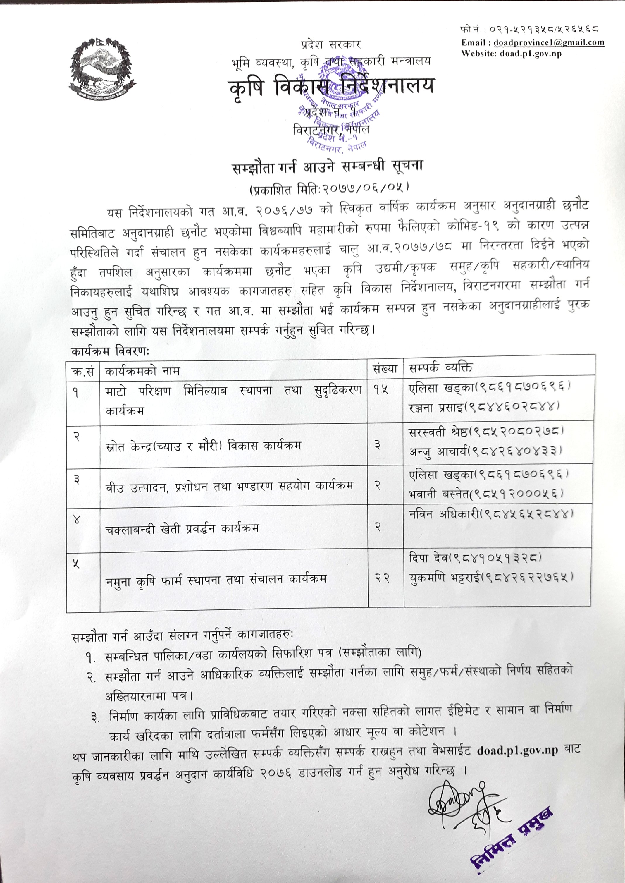 कृषि विकास निर्देशनालयको सम्झौता गर्न आउने सम्बन्धी सूचना!!!