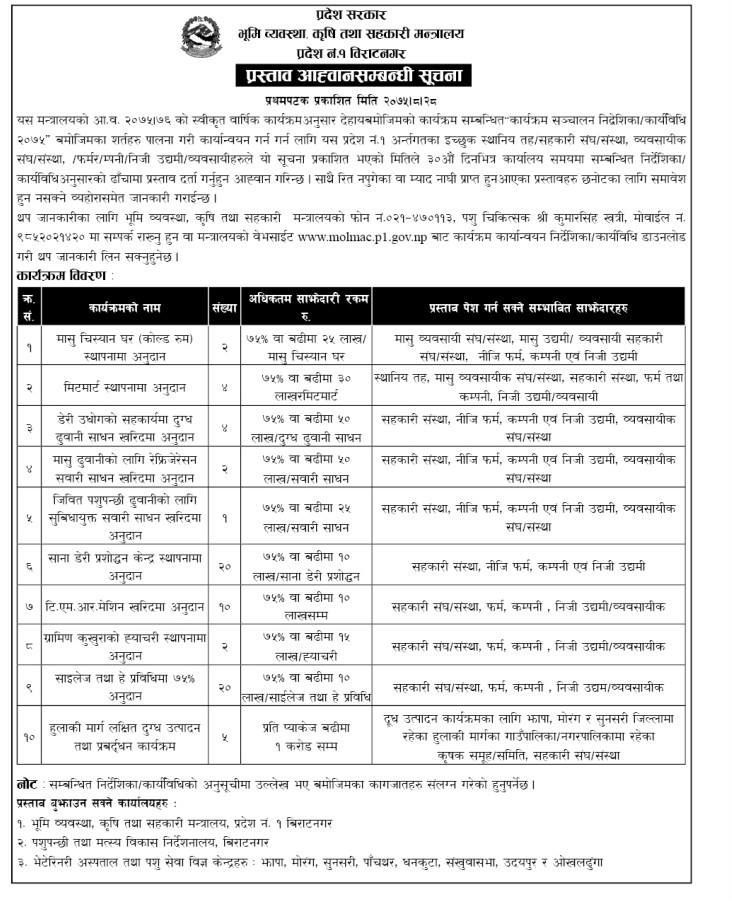 कमर्सियल एग्रिकल्चर एलायन्स (CAA) मार्फत सञ्चालन हुने व्यवसायिक कृषि विकास कार्यक्रम सञ्चलानका लागि प्रस्ताव आव्हान सम्बन्धी सूचना
