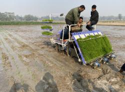 झापामा मेसिनबाट धान रोपाई (प्रविधि प्रदर्शन)